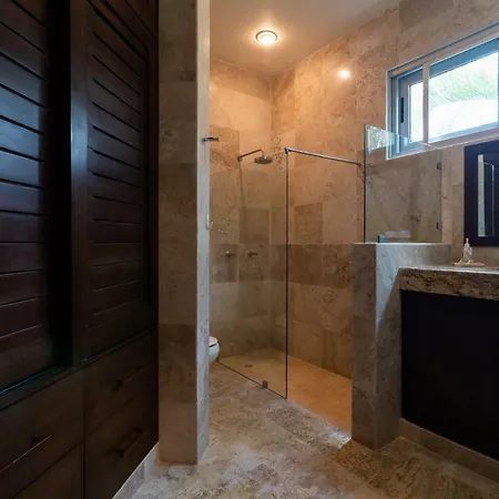 As casas de banho de Casa Martini- Oceanfront Private Pool House For 6 Vila também incluem casa de banho separada e chuveiro. Além disso, os hóspedes podem desfrutar da conveniência de secador de cabelo, lençóis de banho e toalhas.
